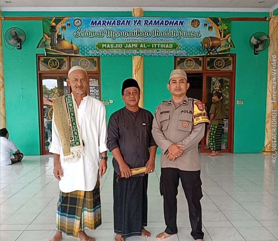 Cilegon - Bhabinkamtibmas Polsek Ciwandan Polres Cilegon Polda Banten Selesai melaksanakan Sholat secara berjama’ah dan Sampaikan Himbauan-himbauan Kamtibmas Kepada Masyarakat Jama'ah Yang ada Dimasjid, Jum'at (20/02/2026).Kapolres Cilegon Polda Banten AKBP Dr. Martua Raja Taripar Laut Silitonga Melalui Kapolsek Ciwandan Polres Cilegon Polda Banten KOMPOL Achri Dwi Yunito Mengatakan bahwa Usai melaksanakan...