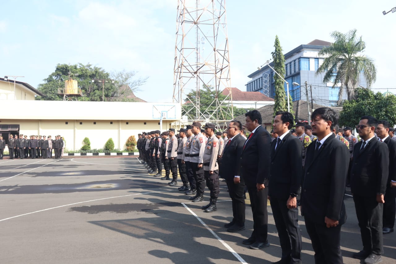 Upacara berlangsung khidmat dengan rangkaian pembacaan Pembukaan UUD 1945 dan Ikrar Hari Kesaktian Pancasila. Seluruh jajaran turut hadir, mulai dari para pejabat utama Polres, para Kapolsek, hingga personel gabungan dari berbagai satuan fungsi dan ASN Polri.