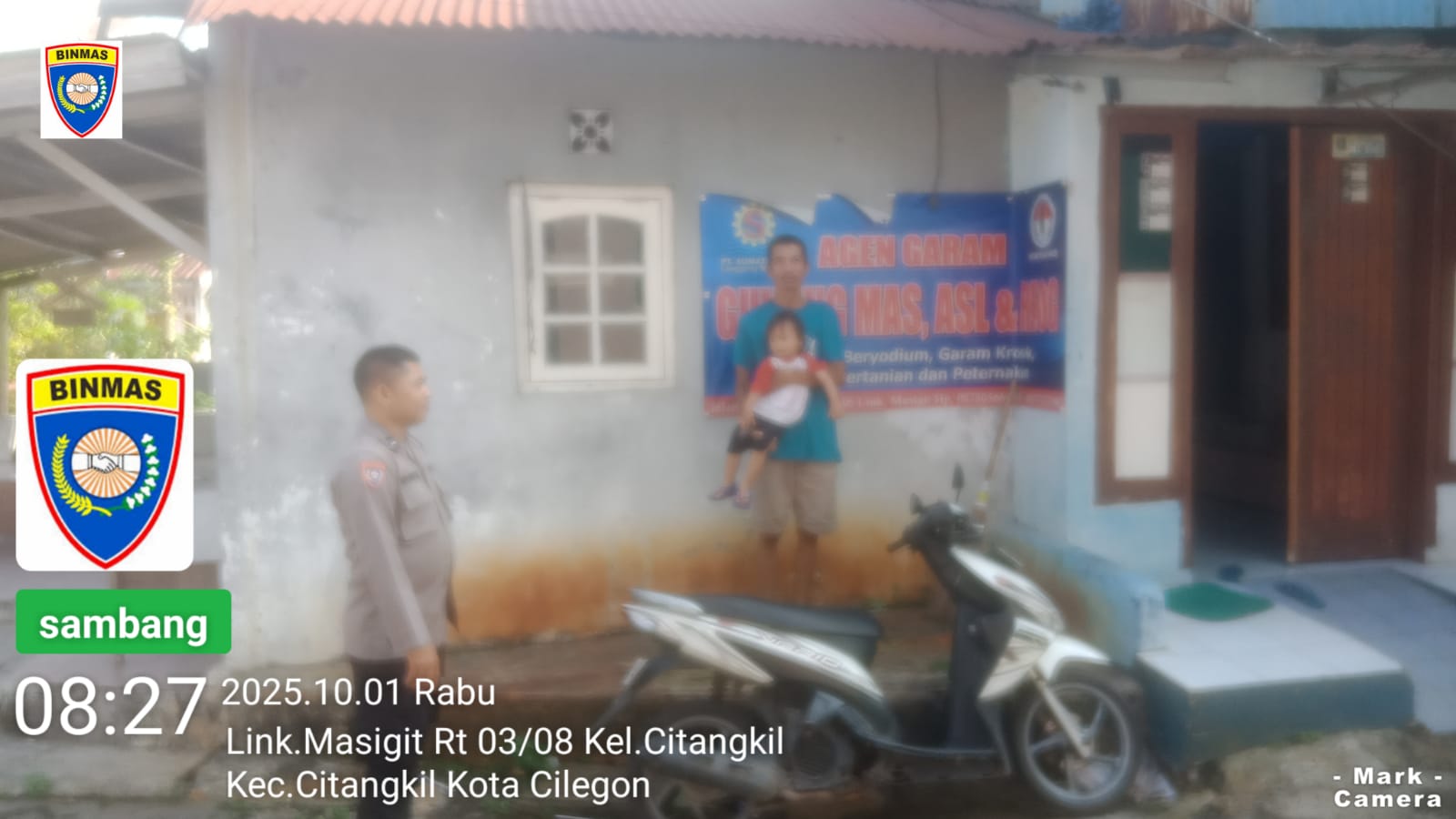 Cilegon - Bhabinkamtibmas Polsek Ciwandan Polres Cilegon Polda Banten  Melaksanakan kegiatan Dialogis/Sambang Door to Door Sistem (DDS) Di daerah binaannya serta memberikan Pesan-pesan Kamtibmas Guna Menciptakan situasi Harkamtibmas yang Aman dan nyaman, Rabu (01/10/2025).
