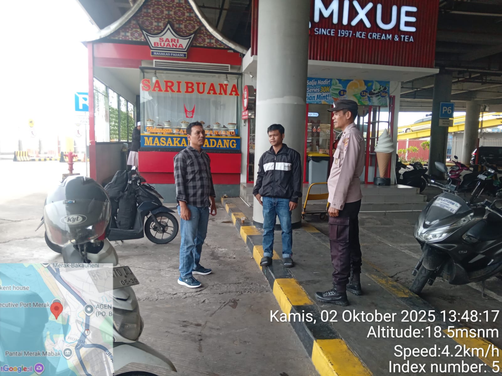 Cilegon - Personel Polsek Kskp Merak Polres Cilegon Polda Banten melaksanakan sambang dan patroli kawasan pelabuhan merak dalam rangka menjaga Harkamtibmas di Kawasan Pelabuhan Merak, Kamis (02/10/2025).