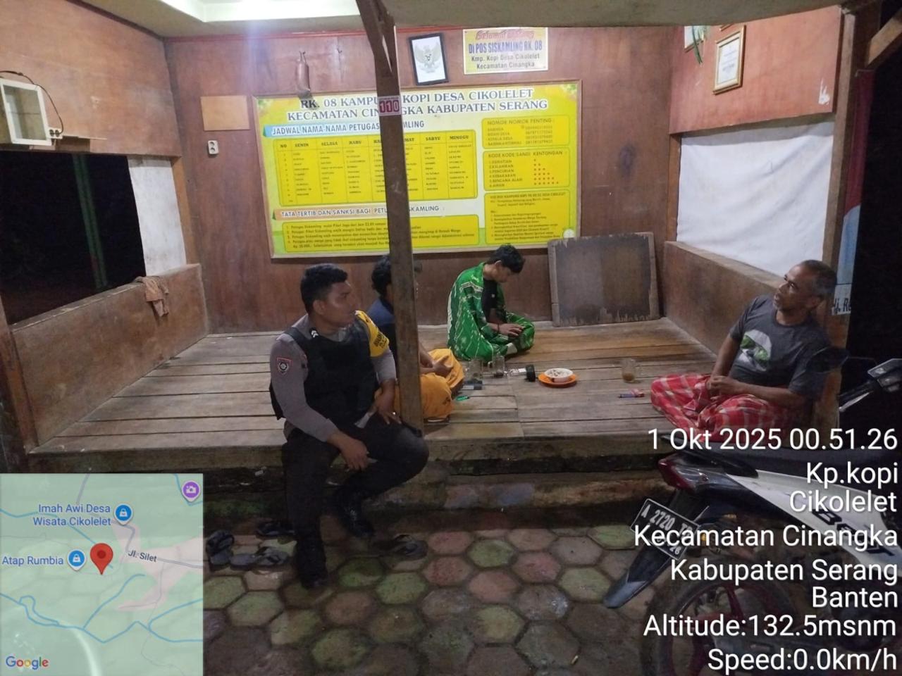*Polres Cilegon* || Personel Bhabinkamtibmas Polsek Cinangka melaksanakan Program Commander Wish Kapolda Banten RONDA SATKAMLING menjalin komunikasi dengan Petugas Siskamling agar berperan aktif dalam menciptakan Harkamtibmas yang aman dan Kondusif, Rabu (01/10/2025).