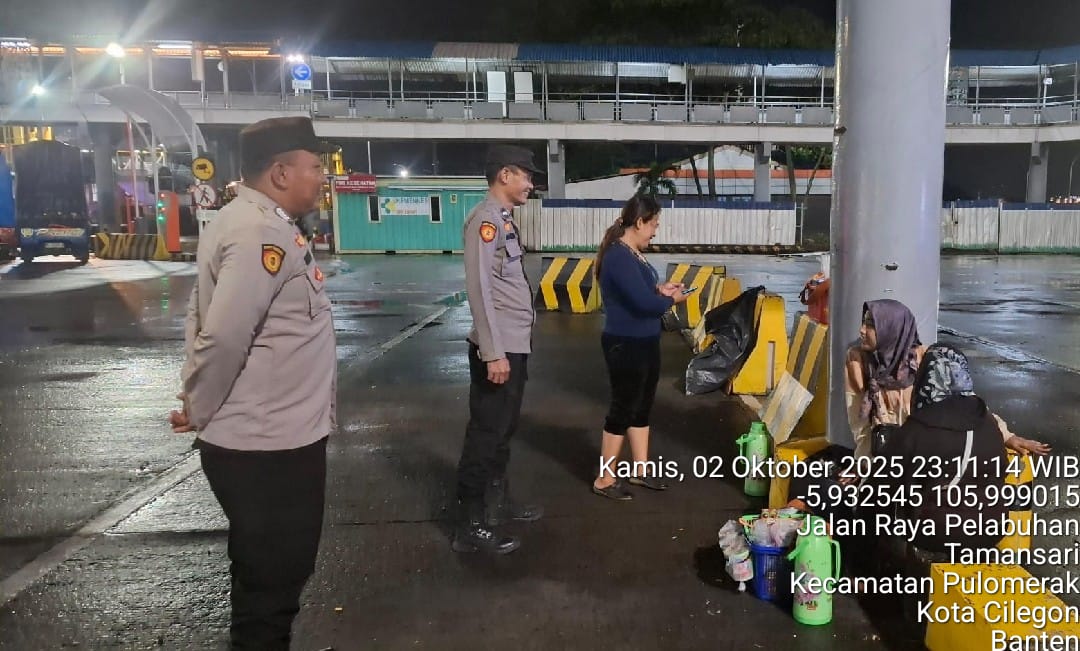 Cilegon - Personil Polsek Kskp Merak Polres Cilegon melaksanakan patroli di kawasan pelabuhan merak memberikan rasa aman dan damai, Jumat (03/10/2025)