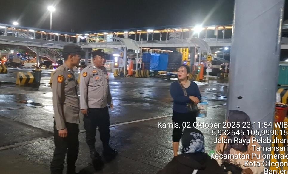 Cilegon - Personil Polsek Kskp Merak Polres Cilegon melaksanakan patroli di kawasan pelabuhan merak memberikan rasa aman dan damai, Jumat (03/10/2025)
