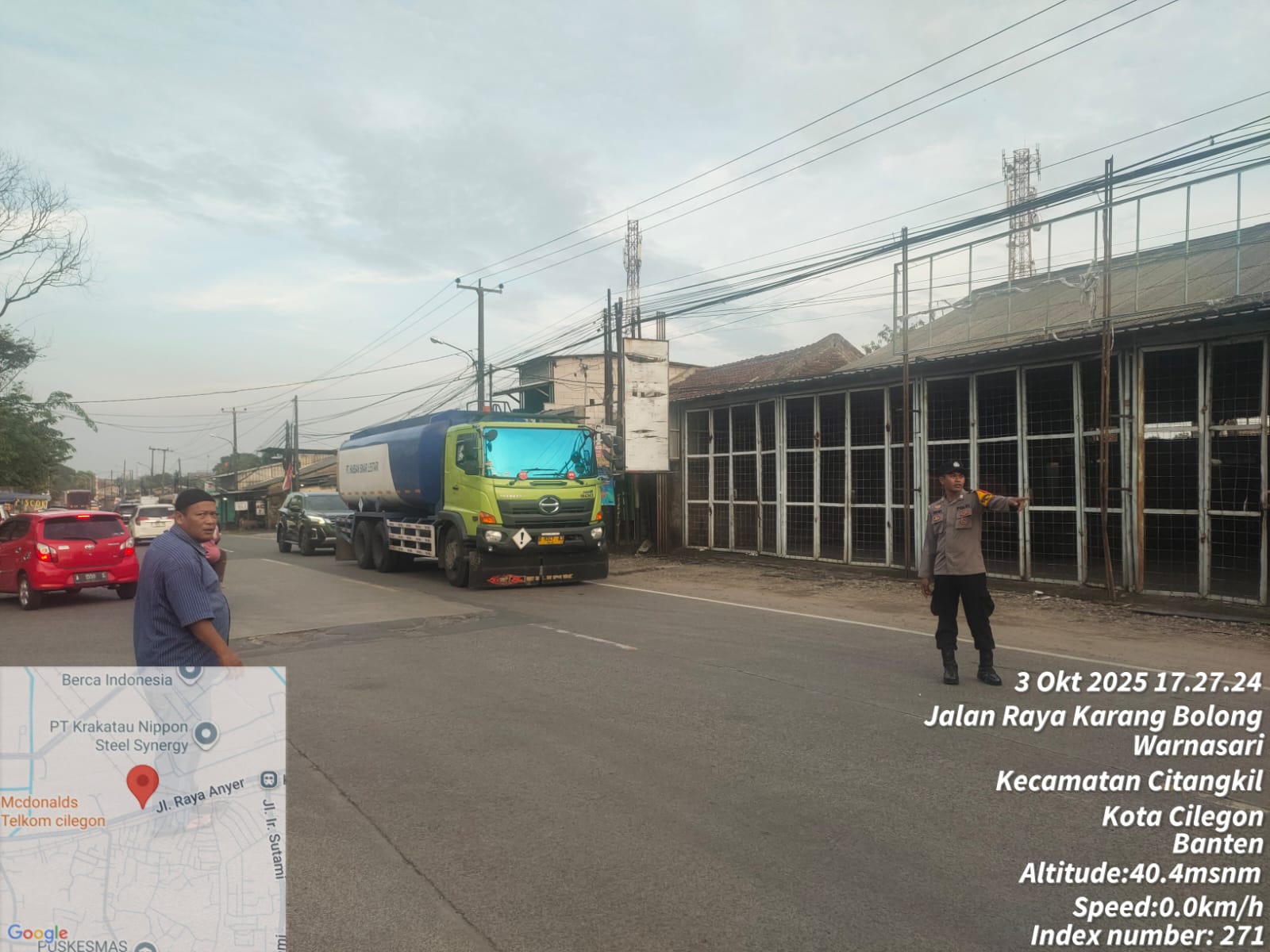 Cilegon - Dalam Mewujudkan Aksi Nyata Pelayanan Kepada Masyarakat,Personil Polsek Ciwandan Polres Cilegon Polda Banten Laksanakan Strong Poin Pengaturan Lalu-lintas,Jum’at (03/10/2025).