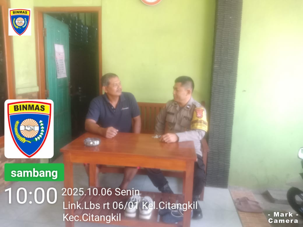 Cilegon - Bhabinkamtibmas Polsek Ciwandan Polres Cilegon Polda Banten Melalui Sambang Dialogis menjaga kamtibmas selalu kondusif dan aman serta untuk mengetahui situasi dan kondisi terkini yang ada di Daerah binaannya,Sekaligus sebagai sarana silaturahmi dengan berbagai elemen yang ada di masyarakat, Senin (06/10/2025).