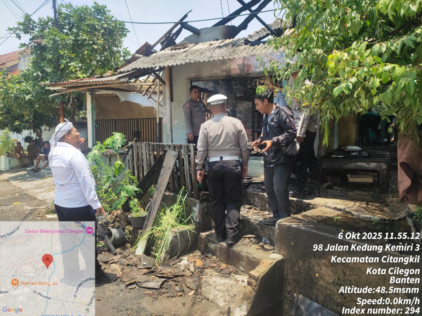 Cilegon - Polsek Ciwandan merespons cepat kebakaran warung dan dapur rumah milik Sdri. Mas'ah di Link Tegal Cabe, Kelurahan Citangkil, Kecamatan Citangkil, Kota Cilegon, pada Senin, 6 Oktober 2025. Api berhasil dipadamkan setelah tiga unit mobil pemadam kebakaran tiba di lokasi,Senin (06/10/2025).