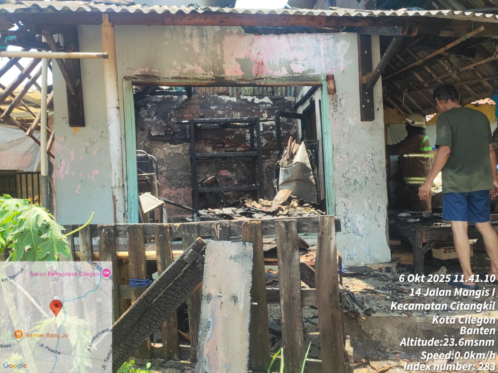 Cilegon - Polsek Ciwandan merespons cepat kebakaran warung dan dapur rumah milik Sdri. Mas'ah di Link Tegal Cabe, Kelurahan Citangkil, Kecamatan Citangkil, Kota Cilegon, pada Senin, 6 Oktober 2025. Api berhasil dipadamkan setelah tiga unit mobil pemadam kebakaran tiba di lokasi,Senin (06/10/2025).