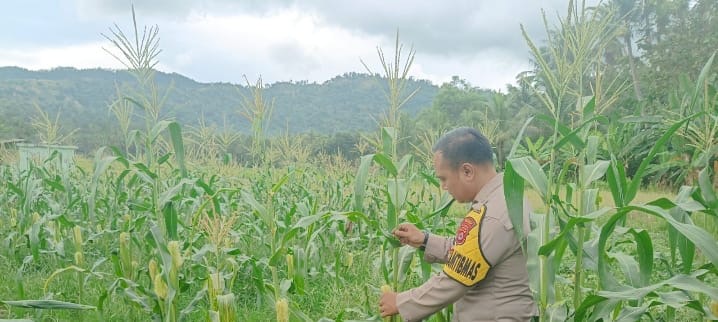 -POLRES CILEGON- Polda Banten. Personil Bhabinkamtibmas Aipda Anton sudrajat bersama bersama warga binaanya Melaksanakan Cek ke Lahan Jagung Dalam Rangka Mendukung Program Ketahanan Pangan Pemerintah dengan Cek Tanaman jagung di Link. Karang Tengah Kelurahan Pabean Kecamatan Purwakarta Kota Cilegon.Rabu.(08-10-2025)