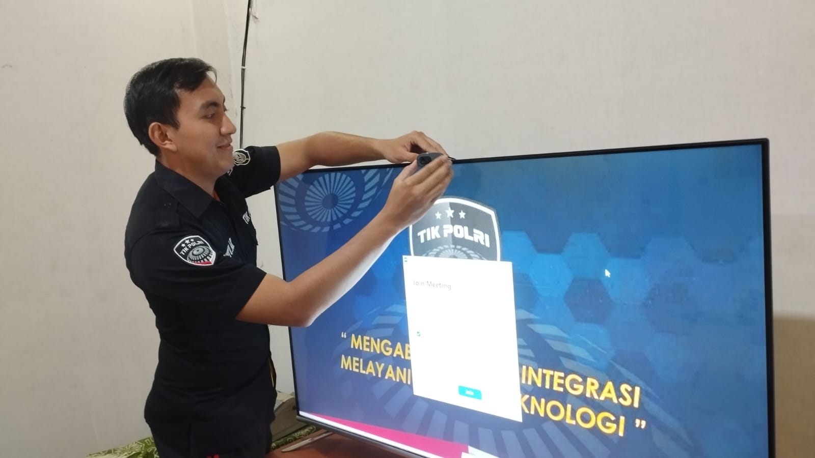 Anggota Tik Polres Cilegon Menyiapkan Sarana dan Prasarana Untuk Kegiatan Zoom meeting Dalam pelaksanaan kegiatan zoom meeting tersebut anggota TIK Polres Cilegon yang bertanggung jawab untuk menyiapkan peralatan zoom. Selain itu agar di tidak ada gangguan jaringan sebelum pelaksanaan anggota TIK melakukan pemeriksaan terhadap sarana dan prasarana tersebut . Satu jam sebelum kegiatan zoom meeting itu dimulai. Kapolres Cilegon AKBP. DR. MARTUA RAJA TARIPAR LAUT SILITONGA. melalui Kasi TIK IPTU Lukman menyampaikan bahwa “untuk menunjang kelancaran penyampaian informasi anggota TIk Polres Cilegon selalu memeriksa sarana dan prasarana tersebut, sebelum maupun pada saat pelaksanaan akan selalu di monitor”