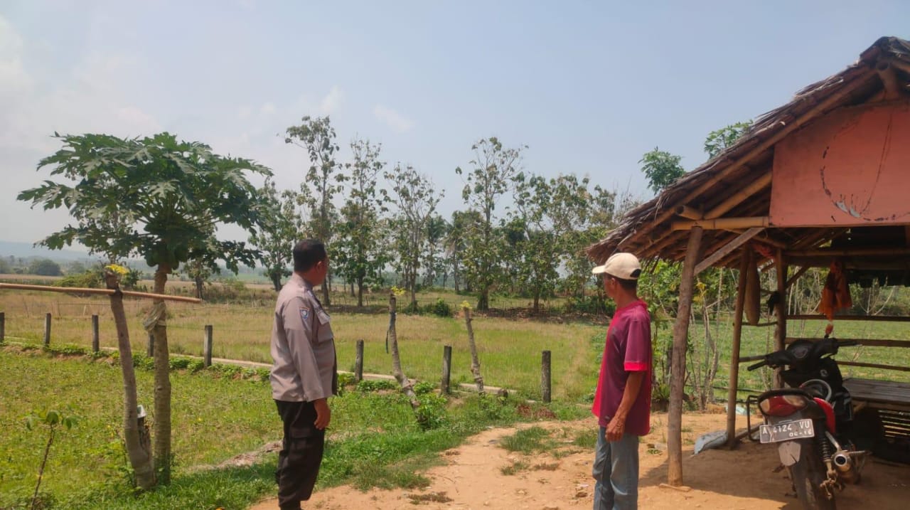 Cilegon – Dalam rangka mendukung program ketahanan pangan nasional dan swasembada pangan Bhabinkamtibmas Polsek Anyar melaksanakan kegiatan sambang dan monitoring lahan pertanian jagung di Desa Cikoneng, Kecamatan Anyar, Kabupaten Serang. Jum'at (10/10)