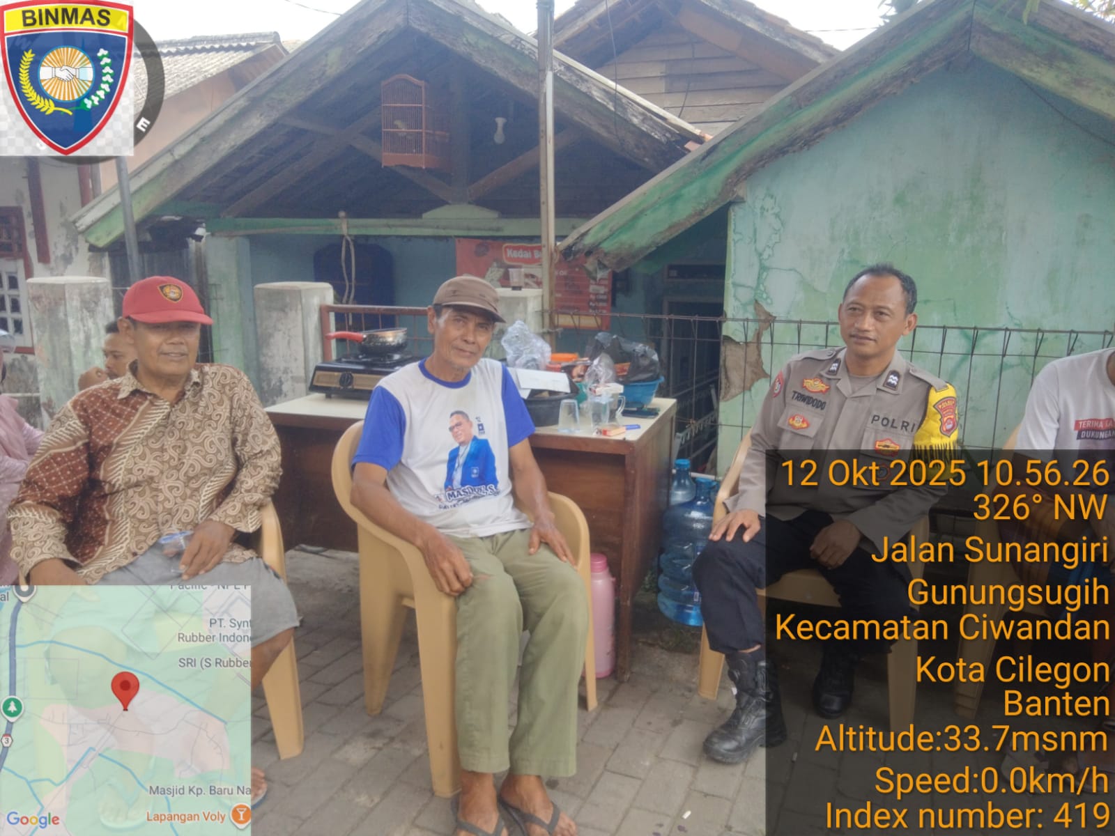 Cilegon - Konsisten dalam menjalin silaturahmi dan membangun komunikasi yang baik dengan Masyarakat binaannya masing – masing ,Bhabinkamtibmas Polsek Ciwandan Polres Cilegon Polda Banten Melaksanakan Sowan dan Sambang Dialogis menciptakan kamtibmas yang kondusif di daerah binaannya,Minggu (12/10/2025).