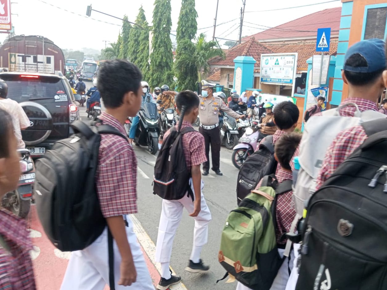 Bantu lancarkan arus lalulintas lantas Polsek Pulomerak lakukan pengaturan