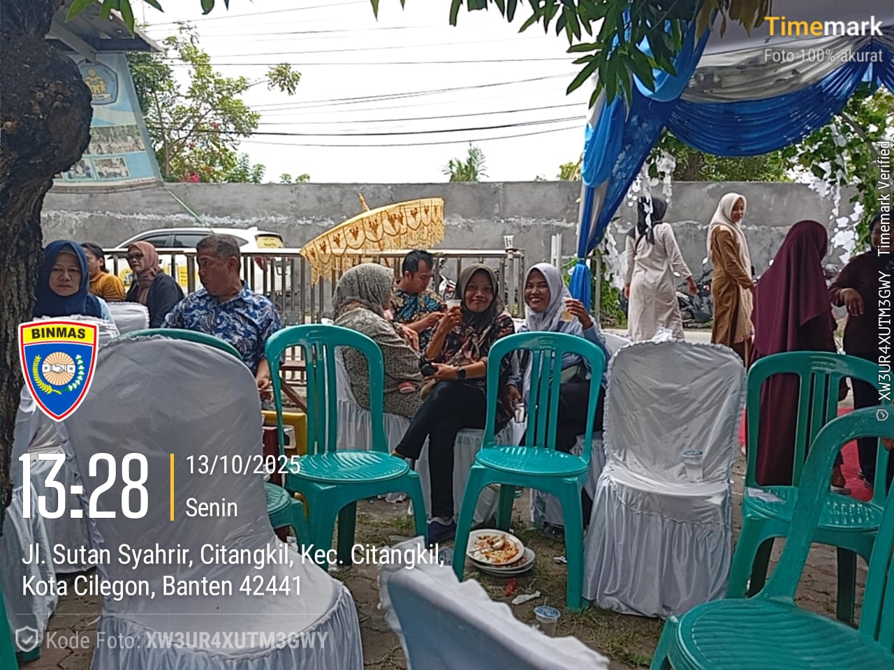 Cilegon - Bhabinkamtibmas Polsek Ciwandan Polres Cilegon Polda Banten melaksanakan Kegiatan Kondangan/Undangan ini bertujuan untuk memastikan acara berlangsung dengan aman dan tertib, serta memberikan rasa aman kepada warga yang menghadiri resepsi pernikahan tersebut,Senin (13/10/2025).