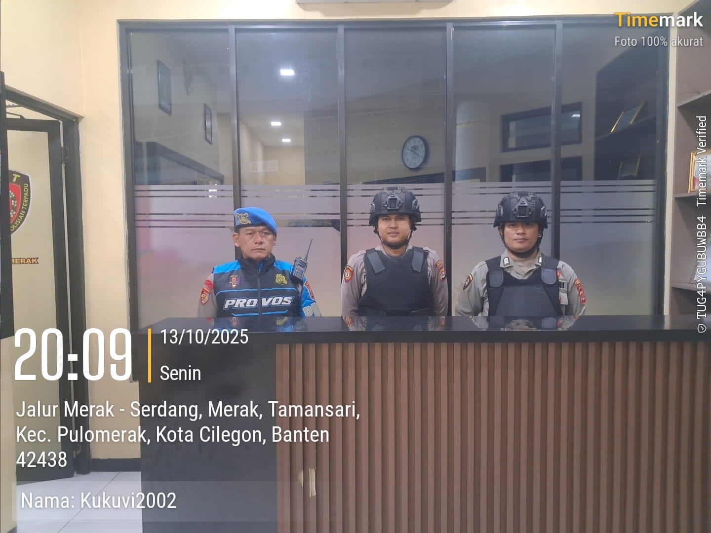 Cilegon - Personel piket jaga Polsek Kskp Merak Polres Cilgon Polda Banten melaksanakan siaga 1 Polsek pelaksanaan Sispam Mako oleh piket siaga dipimpin oleh Kspk Polsek Kskp Merak Polres Cilegon Polda Banten, Selasa (14/10/2025).