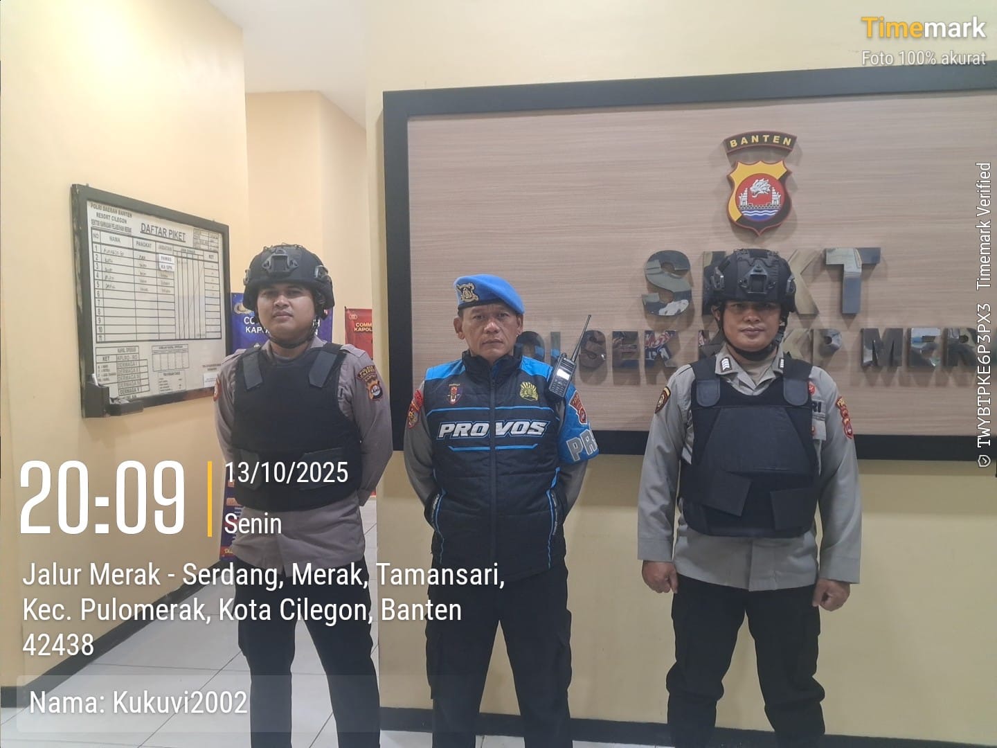Cilegon - Personel piket jaga Polsek Kskp Merak Polres Cilgon Polda Banten melaksanakan siaga 1 Polsek pelaksanaan Sispam Mako oleh piket siaga dipimpin oleh Kspk Polsek Kskp Merak Polres Cilegon Polda Banten, Selasa (14/10/2025).