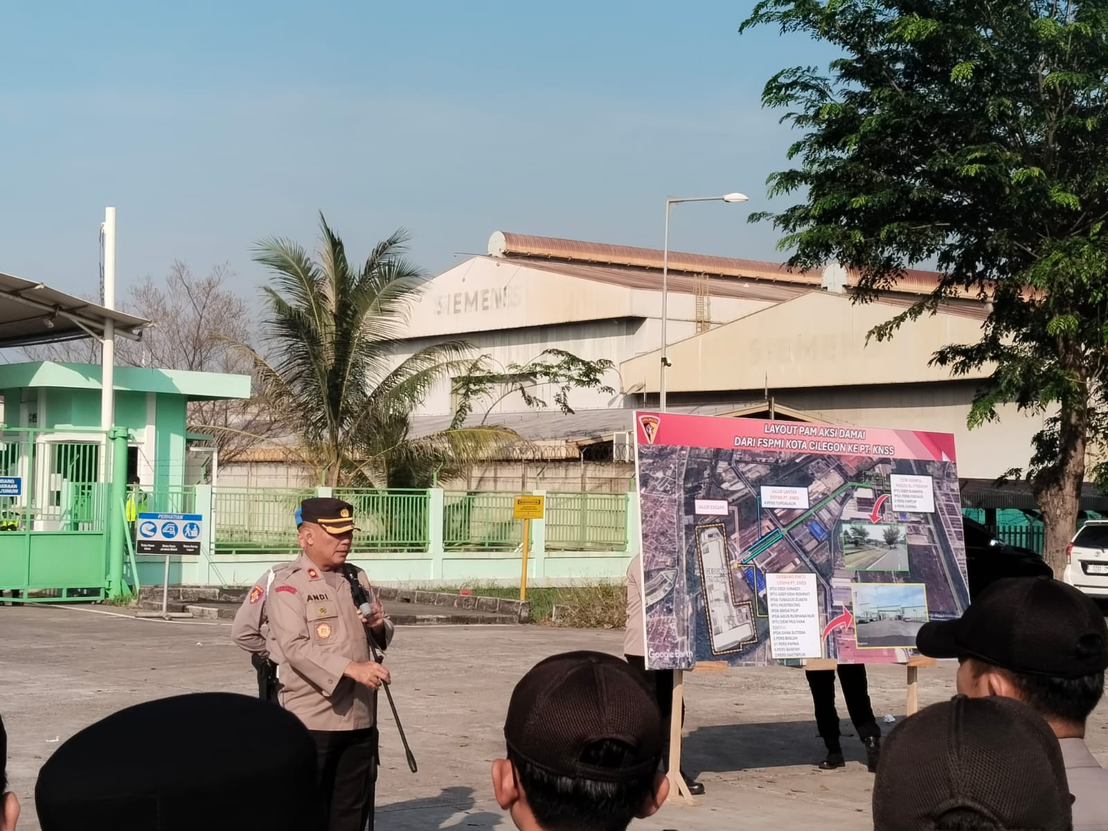 Kapolres Cilegon Polda Banten AKBP Dr. Martua Raja Taripar Laut Silitonga Melalui Kapolsek Ciwandan Polres Cilegon Polda Banten KOMPOL Andi Suherman Mengatakan bahwa Dengan kekuatan personil sebanyak 105 orang, apel pengamanan ini dilaksanakan untuk memastikan keamanan dan ketertiban selama aksi damai berlangsung.