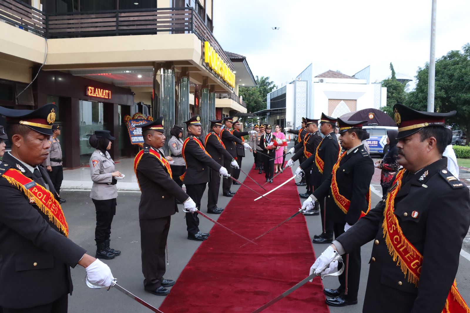 Kegiatan kemudian dilanjutkan dengan tradisi Farewell, di mana Purnawirawan Kompol Chotidjah, S.H. dilepas dengan penghormatan saat berjalan meninggalkan gerbang penjagaan Polres Cilegon. Deretan personel berdiri tegap memberikan penghormatan terakhir, sementara lantunan lagu perpisahan mengiringi langkahnya menuju babak baru dalam kehidupan setelah pengabdian panjangnya di Kepolisian.