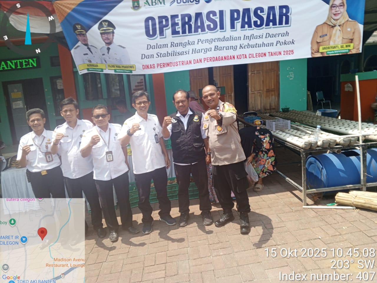 Cilegon - Operasi Pasar Murah Kali ini Bertempat di Halaman Kantor kelurahan Lebak Denok Kecamatan Citangkil Kota Cilegon,Bhabinkamtibmas Kelurahan Lebak Denok AIPTU Yudi Setiawan Melaksanakan Pengamanan di Lokasi, Rabu (15/10/2025).