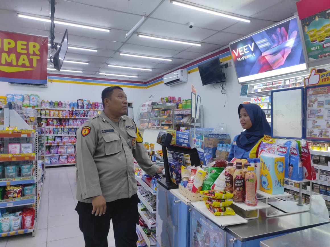 Sosialisasi Call Center 110, Bripka Gheri Polsek Bojonegara Laksanakan Sambang ke Penjaga Swalayan Indo Mart