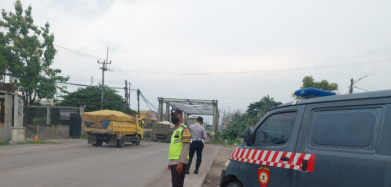 Personel Polsek Bojonegara Strong Poin Atur Lalu-Lintas Dalam Pelayanan Sore Hari Jembatan Teratai