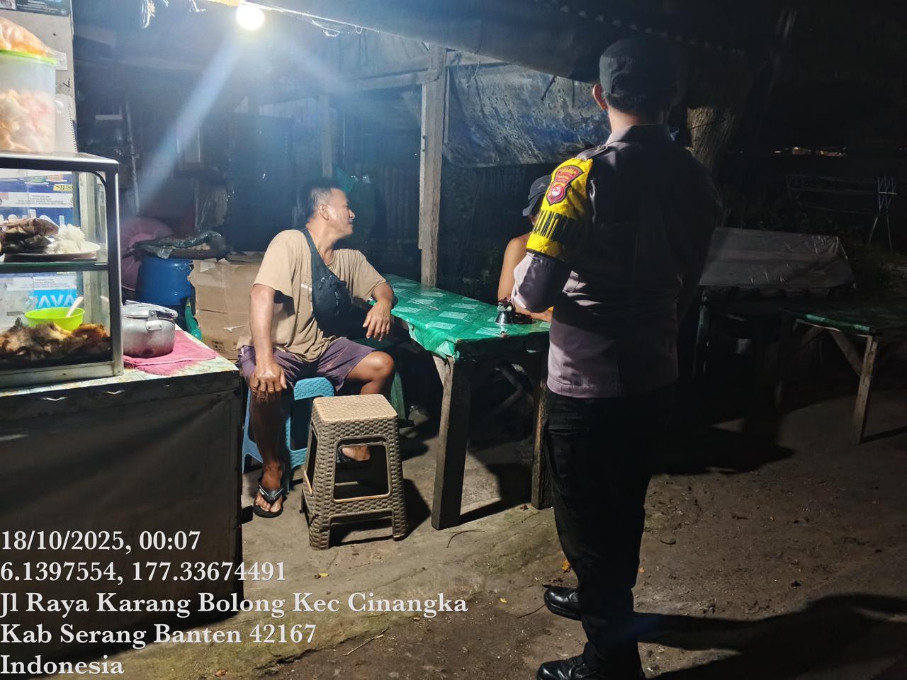 *Cilegon* – Dalam Rangka Pencegahan Kejahatan Jalanan dan Memelihara situasi keamanan dan menjaga serta memberikan rasa aman dan nyaman di masyarakat,Salah satu upaya untuk mewujudkan hal tersebut sebagaimana yang dilakukan oleh Personil Polsek Cinangka Polres Cilegon Polda Banten melaksanakan giat patroli blue light malam hari hingga menjelang pagi, Sabtu (18/10/2025).