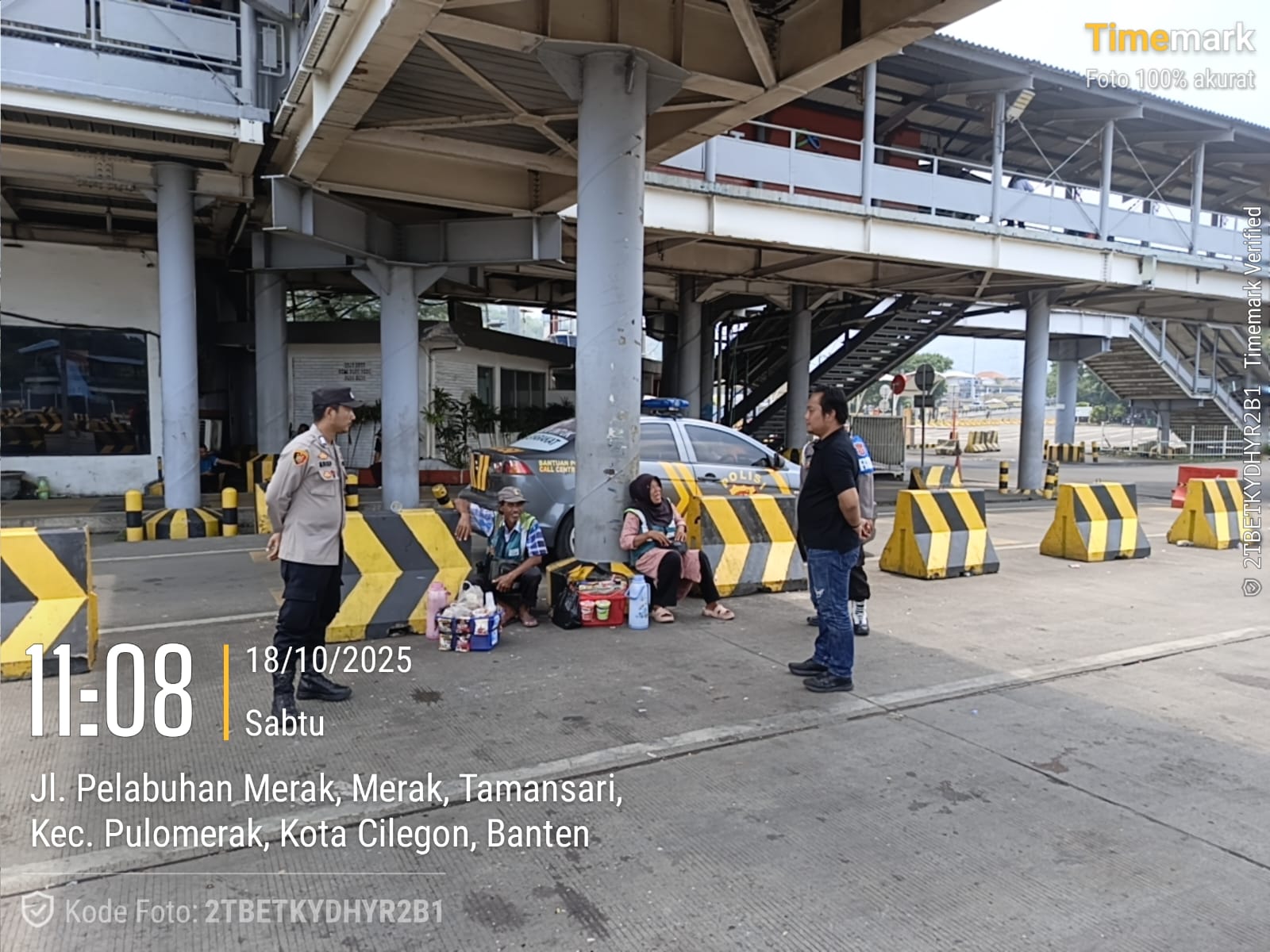 Cilegon - Personel Polsek Kskp Merak Polres Cilegon Polda Banten melaksanakan sambang dan patroli kawasan pelabuhan merak dalam rangka menjaga Harkamtibmas di Kawasan Pelabuhan Merak, Sabtu (18/10/2025).