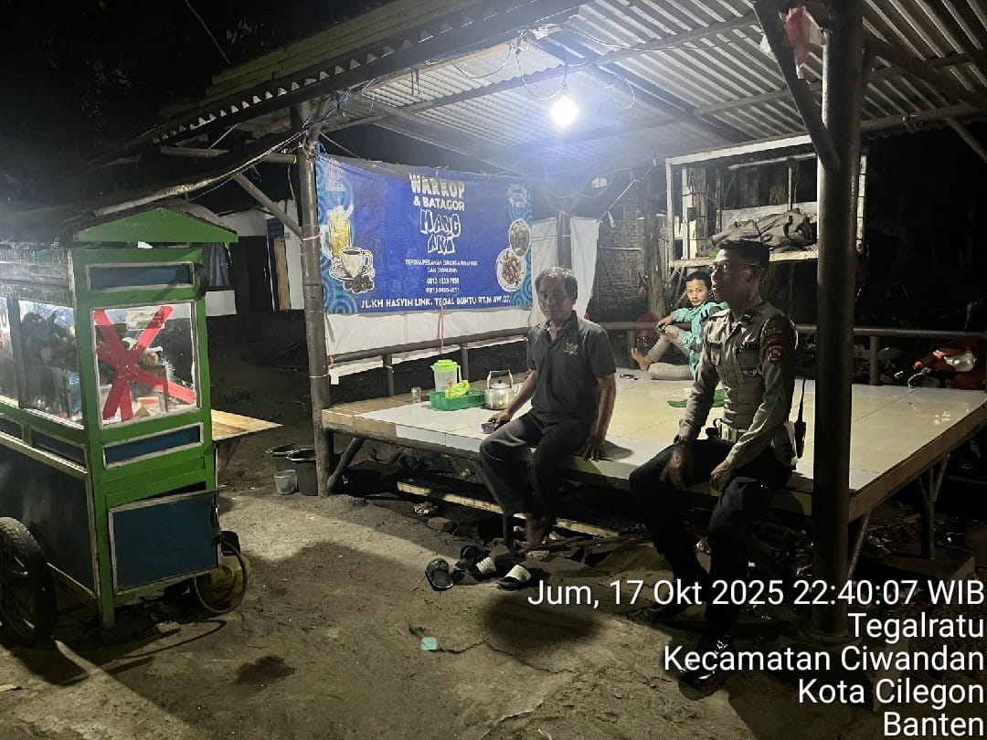 Cilegon - Guna Mencegah Terjadinya Tindak Kejahatan dan Menggiatkan Patroli Pos Ronda Siskamling di Pemukiman warga masyarakat,Personil Polsek Ciwandan Polres Cilegon Polda Banten Mengajak dan memantau pelaksanaan ronda siskamling di lingkungan daerah hukum Polsek Ciwandan, Sabtu (18/10/2025).