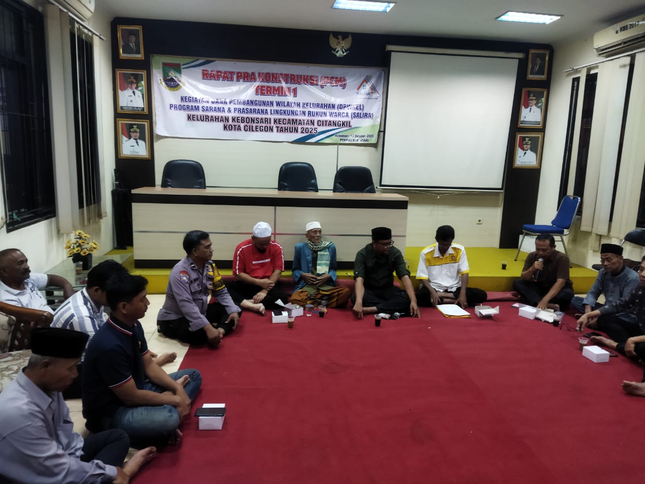 Cilegon - Bhabinkamtibmas Kelurahan Kebonsari Polsek Ciwandan Polres Cilegon Polda Banten AIPDA M. Enday Melaksanakan kegiatan Rapat Pra Kontruksi Pelaksanaan pembangunan Desa Kelurahan Kebonsari Kecamatan Citangkil kota Cilegon, Sabtu (18/10/2025).