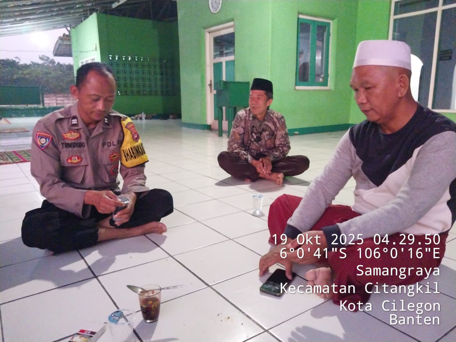 *Cilegon* – Bhabinkamtibmas Polsek Ciwandan Polres Cilegon Polda Banten menggelar kegiatan Pembinaan Rohani dengan Sholat subuh keliling di Masjid Yang ada Di Daerah hukum Polsek Ciwandan Polres Cilegon Polda Banten, Minggu (19/10/2025).