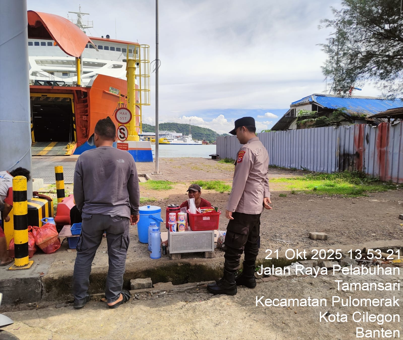 Cilegon - Personil Polsek Kskp Merak Polres Cilegon melaksanakan patroli di kawasan pelabuhan merak memberikan rasa aman dan damai, Selasa (21/10/2025)