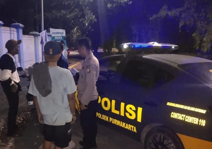 Personel Unit Samapta Polsek Purwakarta melaksanakan patroli blue light di sejumlah wilayah rawan gangguan keamanan dan ketertiban masyarakat (Kamtibmas) pada malam hari