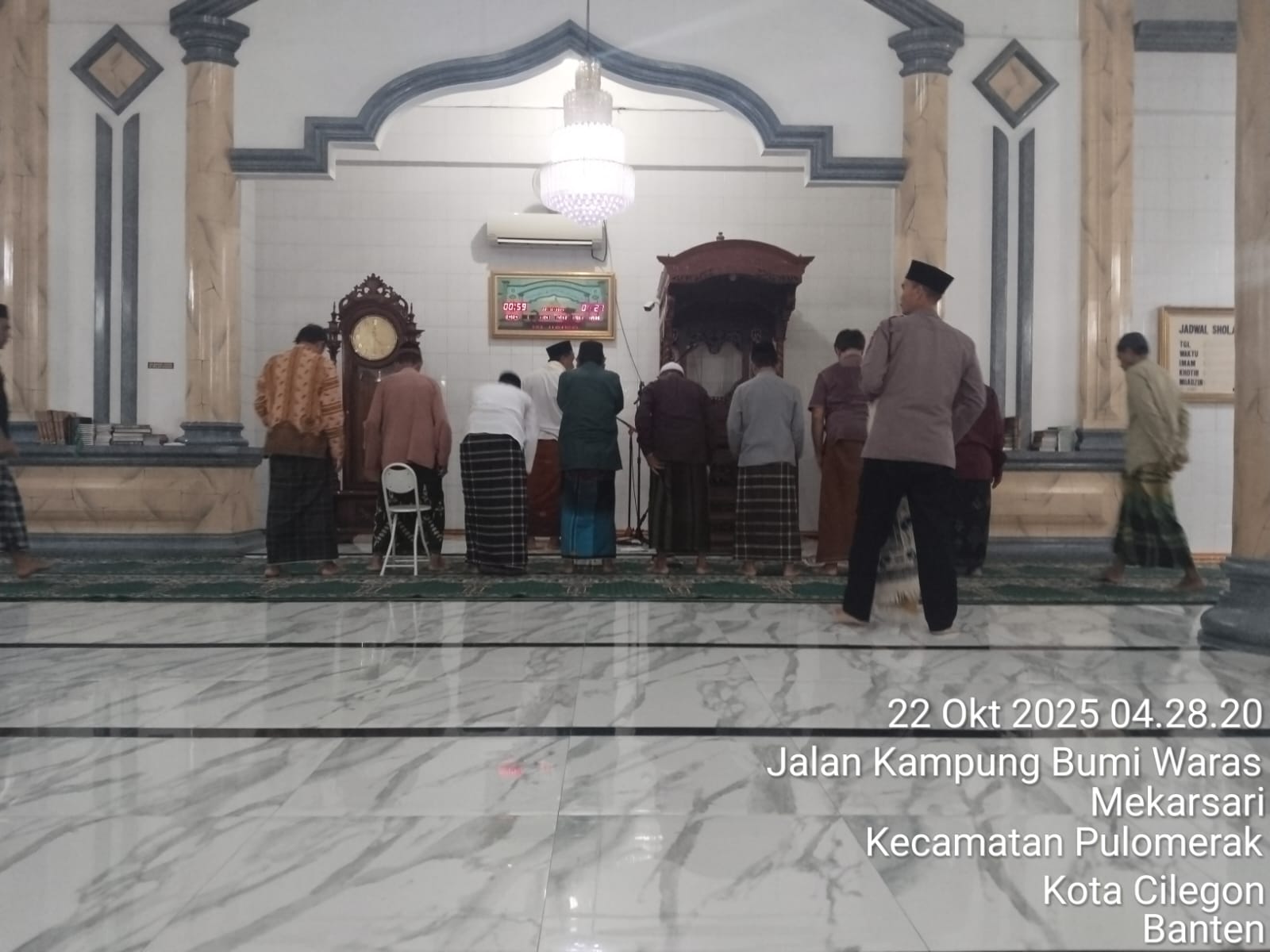 Cilegon – Personil Kskp Merak Polres Cilegon Polda Banten menggelar kegiatan Pembinaan Rohani dengan shalat subuh keliling di Masjid Yang ada Di Daerah hukum Polsek Kp Merak Polres Cilegon Polda Banten, Rabu (22/10/2025).