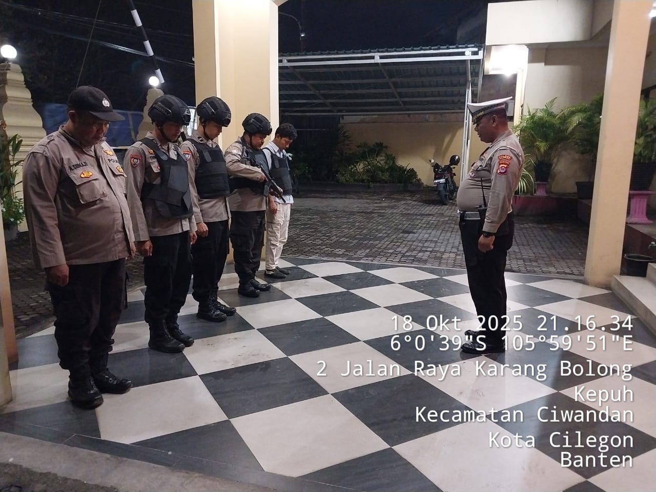 Cilegon - Personil Polsek Ciwandan Polres Cilegon Polda Banten menggelar apel malam Persiapan Patroli yang dipimpin Oleh Pawas Polsek Ciwandan IPTU Deni Mulyana, Rabu (22/10/2025).