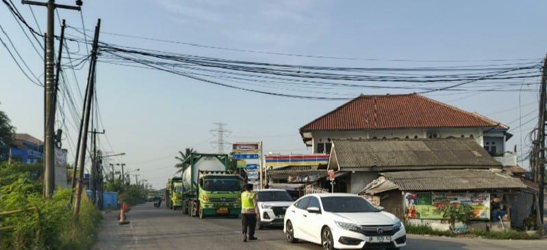 Gatur Lalin, Bripka Zenal bersama Brigadir Chairuman Lancarkan Arus Kendaraan Di Persimpang Wadas Bojonegara