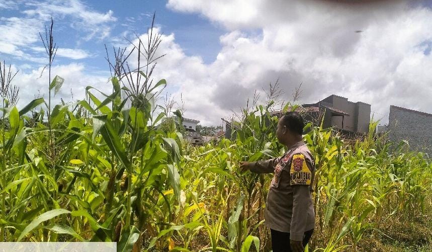 Implementasi Program Asta Cita, personil bhabinkamtibmas polsek Cibeber monitoring di perkebunan Jagung*