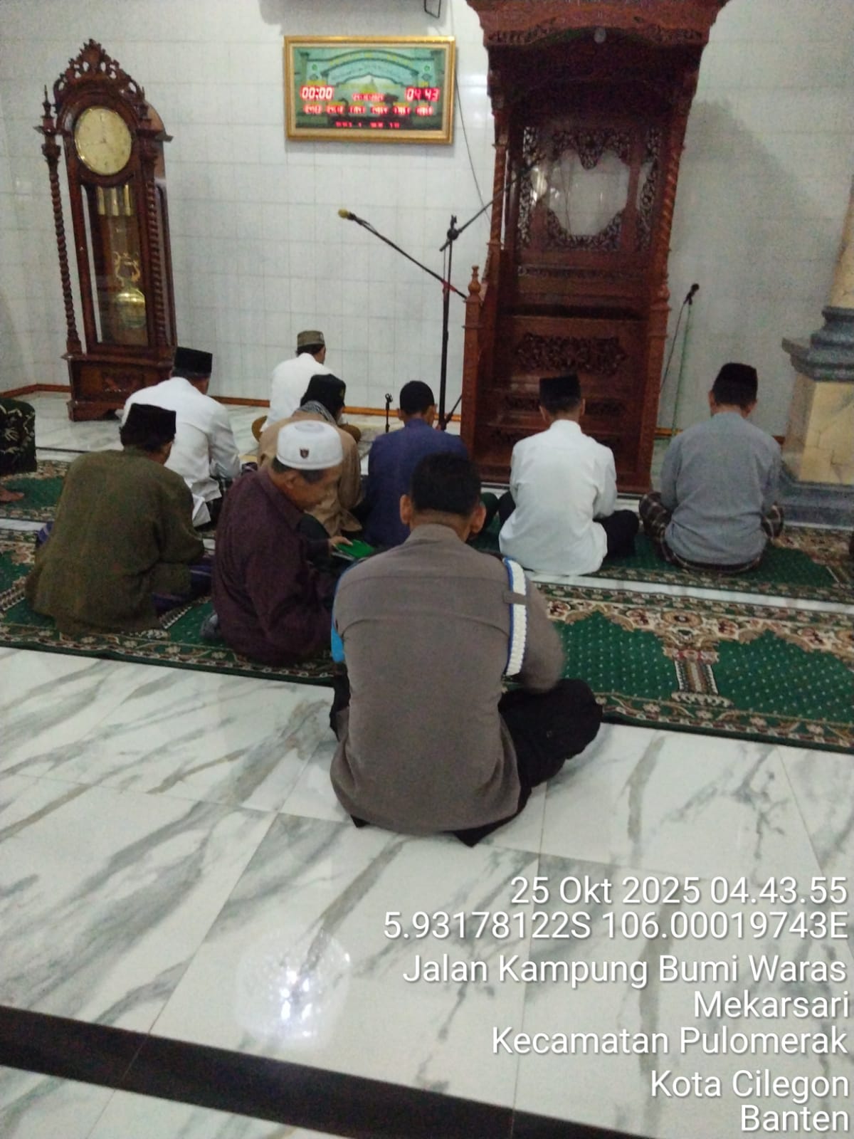 Cilegon – Personil Kskp Merak Polres Cilegon Polda Banten menggelar kegiatan Pembinaan Rohani dengan shalat subuh keliling di Masjid Yang ada Di Daerah hukum Polsek Kp Merak Polres Cilegon Polda Banten, Jumat (24/10/2025).