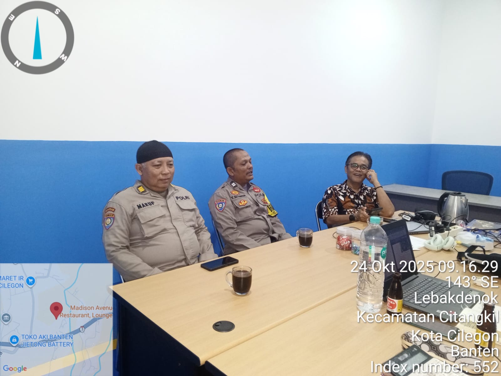 Kapolres Cilegon Polda Banten AKBP Dr Martua Raja Taripar Laut Silitonga Melalui Kapolsek Ciwandan Polres Cilegon Polda Banten KOMPOL Andi Suherman Mengatakan bahwa kegiatan ini bertujuan untuk memastikan kesiapan program MBG dan menyampaikan himbauan Kamtibmas kepada masyarakat.