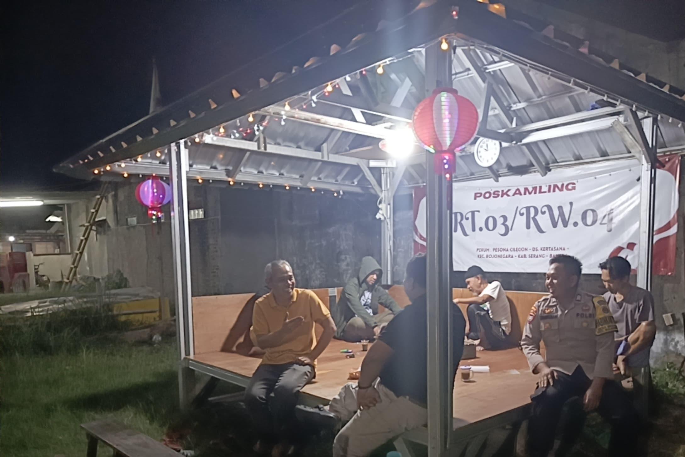 Cilegon ~ Dalam upaya menjaga situasi kamtibmas tetap kondusif,Bhabinkamtibmas Polsek Bojonegara Polres Cilegon Polda Banten,  Bripka Zaenal Bersama Brigadir chairuman melaksanakan kegiatan kontrol dan pemantauan ronda malam,di sejumlah pos ronda warga yang berada di wilayah binaannya, Minggu (26/10/2025).