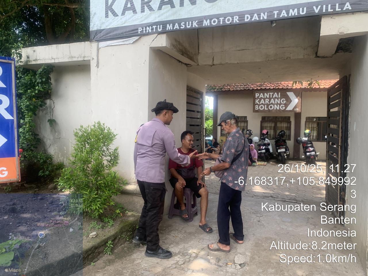 _*POLRES CILEGON*_ | Polsek Cinangka Polres Cilegon Polda Banten melaksanakan kegiatan patroli Serta memberikan Himbauan kepada pengunjung pantai yang berwisata dan Sambang kepada petugas penjaga pantai dan juga antisipasi harkamtibmas di Wilayah Hukum Polsek Cinangka Polres Cilegon Polda Banten, Minggu (26/10/2025).