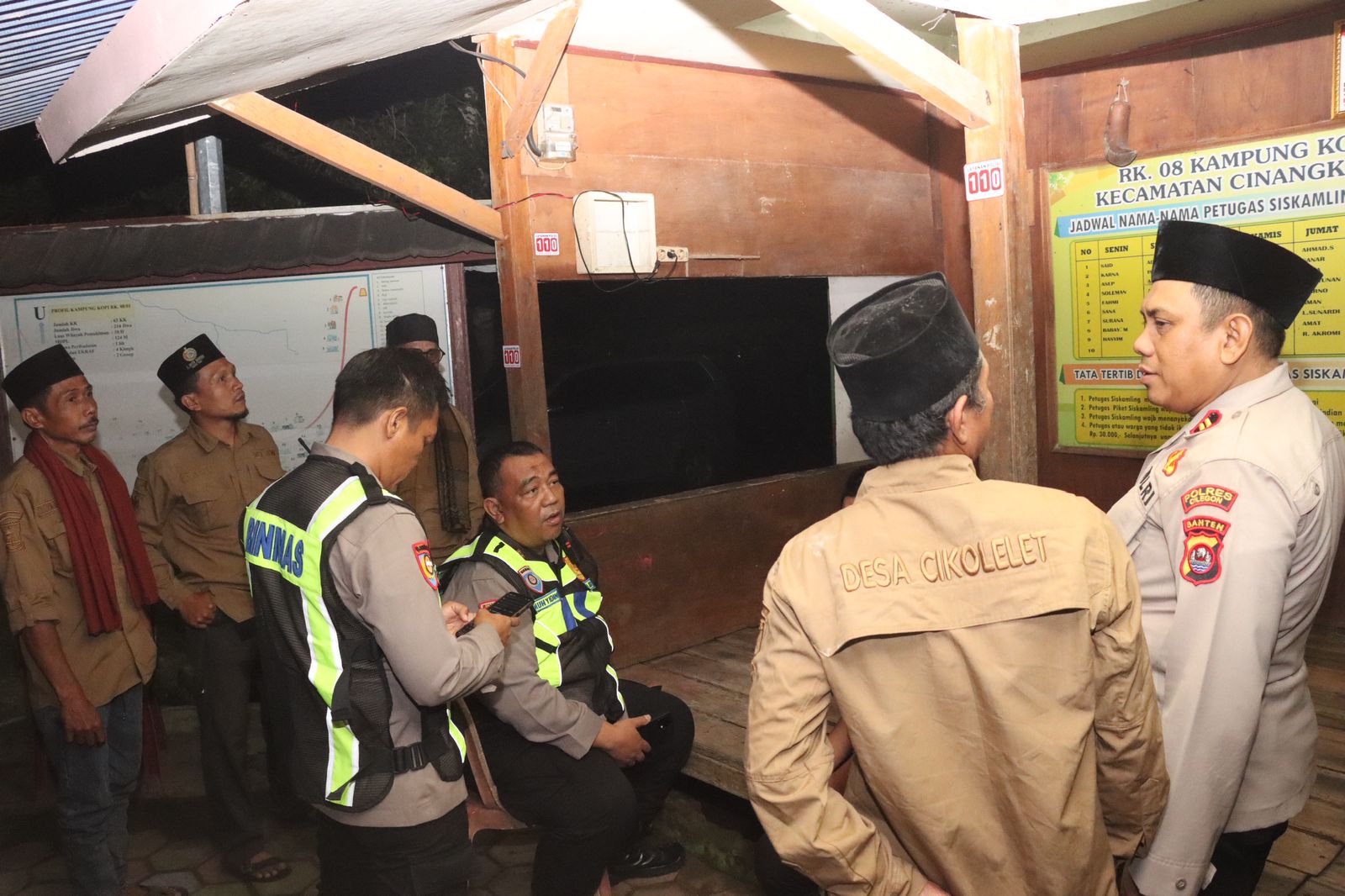Cilegon – Dalam rangka memperkuat kemitraan antara Polri dan masyarakat dalam menjaga keamanan lingkungan, Kapolres Cilegon Polda Banten AKBP Dr Martua Raja Taripar Laut Silitonga S.H., S.I.K., M.Si melalui Kasat Binmas IPTU Muhyidin, S.H., melaksanakan kunjungan ke Pos Kamling Kampung Kopi RT 001 RW 008, Desa Cikolelet, Kecamatan Cinangka, Kabupaten Serang, Sabtu (25/10/2025) malam.