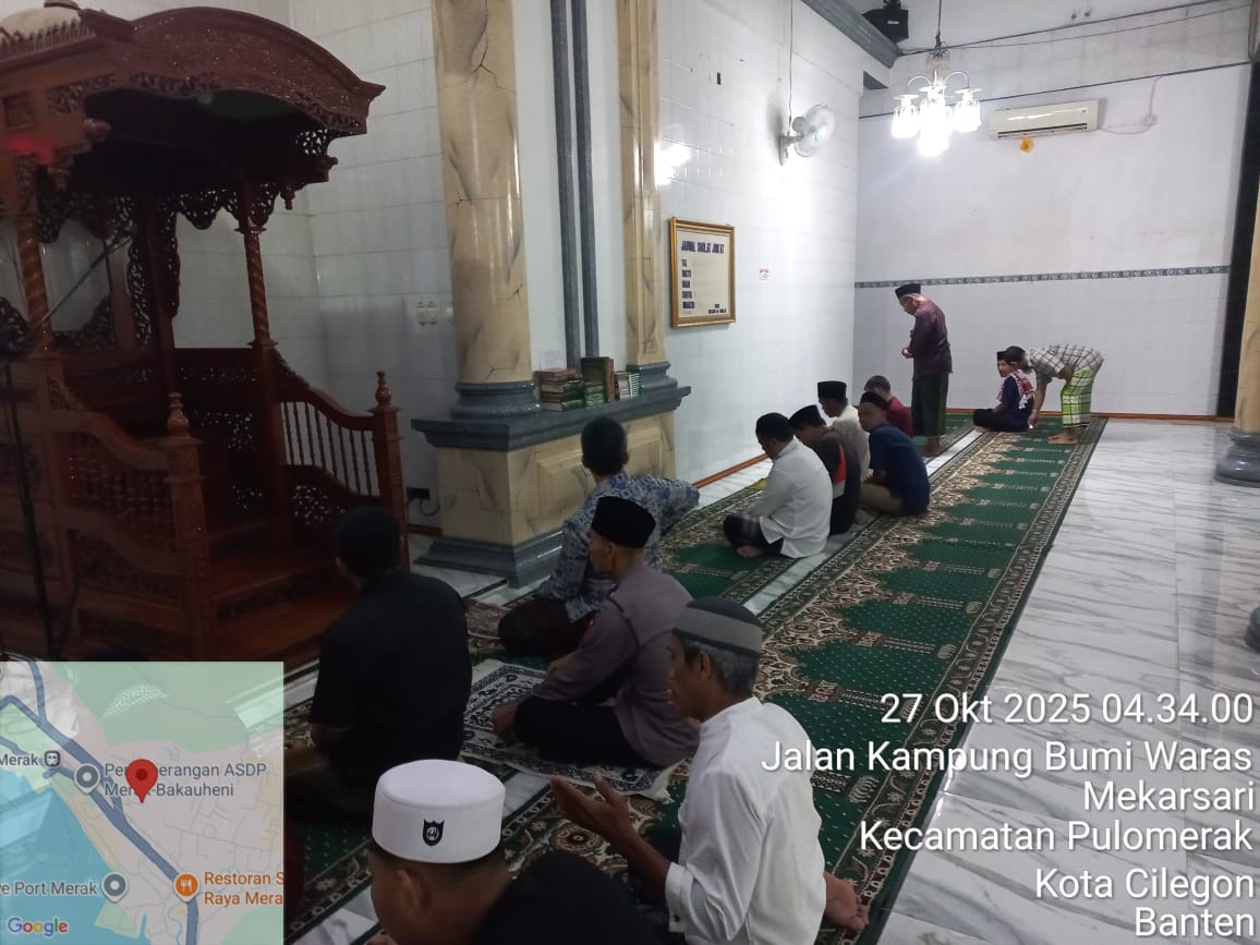 Cilegon – Personil Kskp Merak Polres Cilegon Polda Banten menggelar kegiatan Pembinaan Rohani dengan shalat subuh keliling di Masjid Yang ada Di Daerah hukum Polsek Kp Merak Polres Cilegon Polda Banten, Senin (27/10/2025).