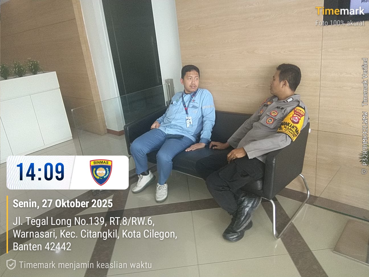 Cilegon - Giat sambang ini merupakan salah satu tugas rutin Bhabinkamtibmas yakni dengan melaksanakan kunjungan kepada warga masyarakat binaannya untuk menjalin silaturahmi yang lebih erat dan menyampaikan pesan-pesan kamtibmas serta mencari informasi yang berkembang di masyarakat agar tercipta situasi kamtibmas yang aman dan kondusif,Senin (27/10/2025).