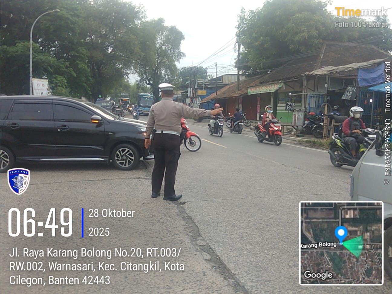 Cilegon - Dalam Mewujudkan Aksi Nyata Pelayanan Kepada Masyarakat,Personil Polsek Ciwandan Polres Cilegon Polda Banten Laksanakan Strong Poin Pengaturan Lalu-lintas, Selasa (28/10/2025).