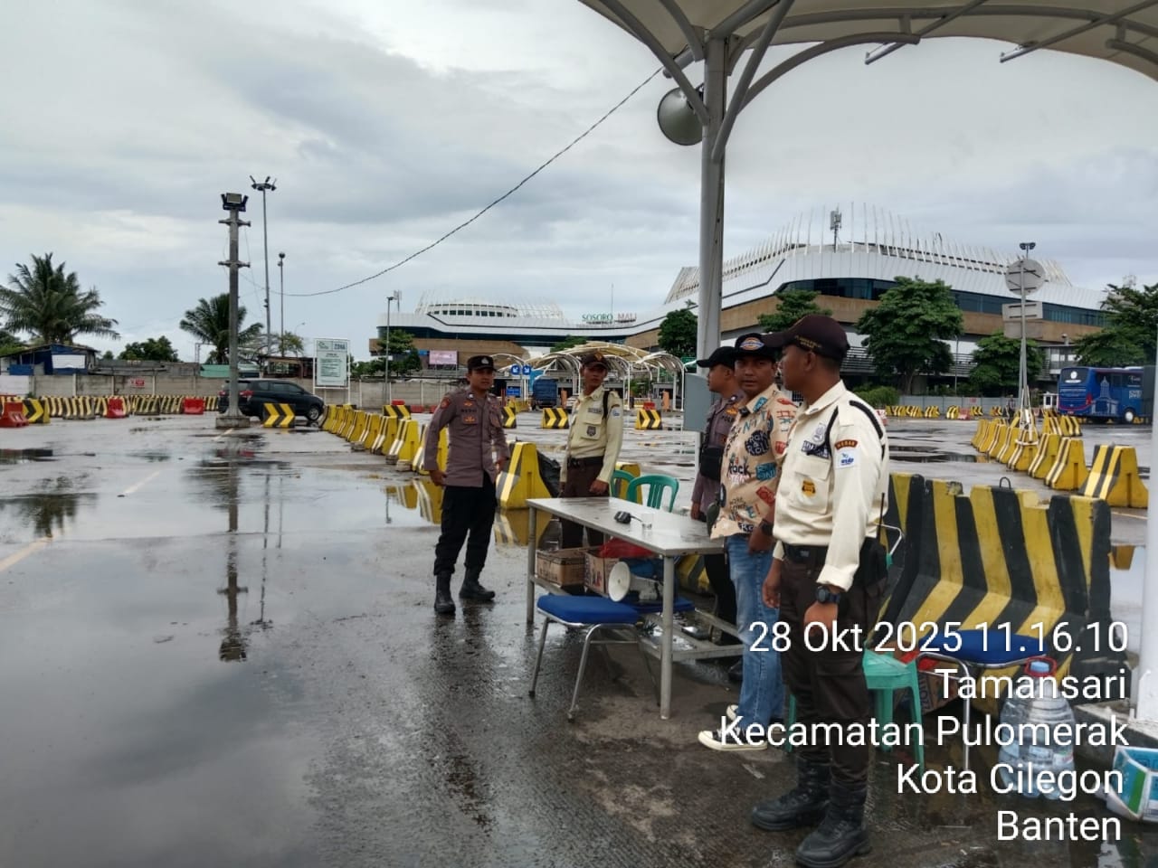 Cilegon - Personel Polsek Kskp Merak Polres Cilegon Polda Banten melaksanakan sambang dan patroli kawasan pelabuhan merak dalam rangka menjaga Harkamtibmas di Kawasan Pelabuhan Merak, Selasa (28/10/2025).