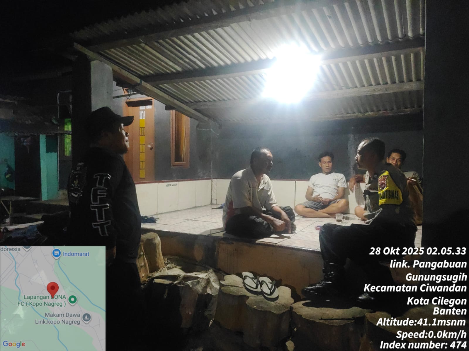 Cilegon - Bhabinkamtibmas Polsek Ciwandan Polres Cilegon Polda Banten kontrol Pos Ronda dan Berikan himbauan kepada pihak terkait dan warga, agar kegiatan Siskamling ditingkatkan lagi, Selasa (28/10/2025).