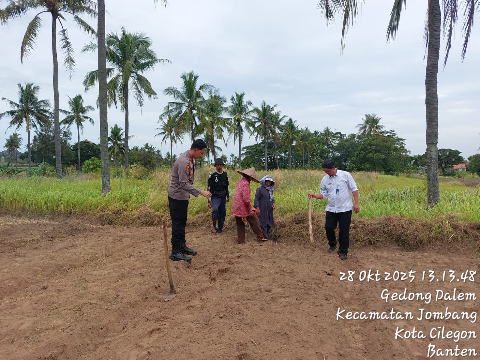 Cilegon - Melaksanakan program pemerintah, penanaman jagung dalam program ketahanan pangan, personil Polsek Kp Merak Polres Cilegon Polda Banten melaksanakan kegiatan peninjauan serta monitoring lokasi yang nantinya akan ditanami bibit jagung unggul di Desa Mangkunegara Kecamatan Bojonegara, Kabupaten Serang, Selasa (28/10/2025).