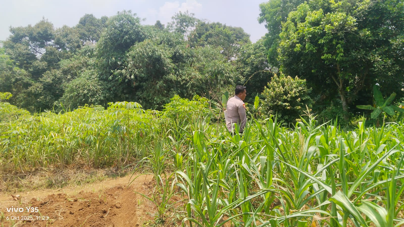 Penanaman Jagung serentak Kuartal IV Seluruh Indonesia di lahan milik kelompok tani Bpk. Maman Rt. 01/01 Kp. Macute Kel. Angsana Kec. Mancak-Serang daerah hukum Polres Cilegon.