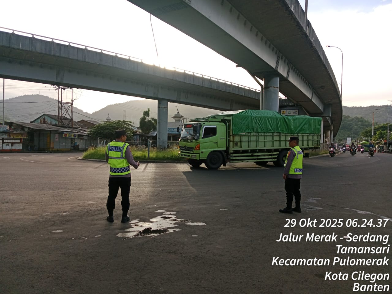 Cilegon - Dalam rangka peningkatan pelayanan prima kepada masyarakat, Kskp Merak Polres Cilegon Polda Banten melaksanakan pengaturan antrian R4 yang akan masuk ke Kapal Ferry di Pelabuhan Merak, Rabu (29/10/2025).