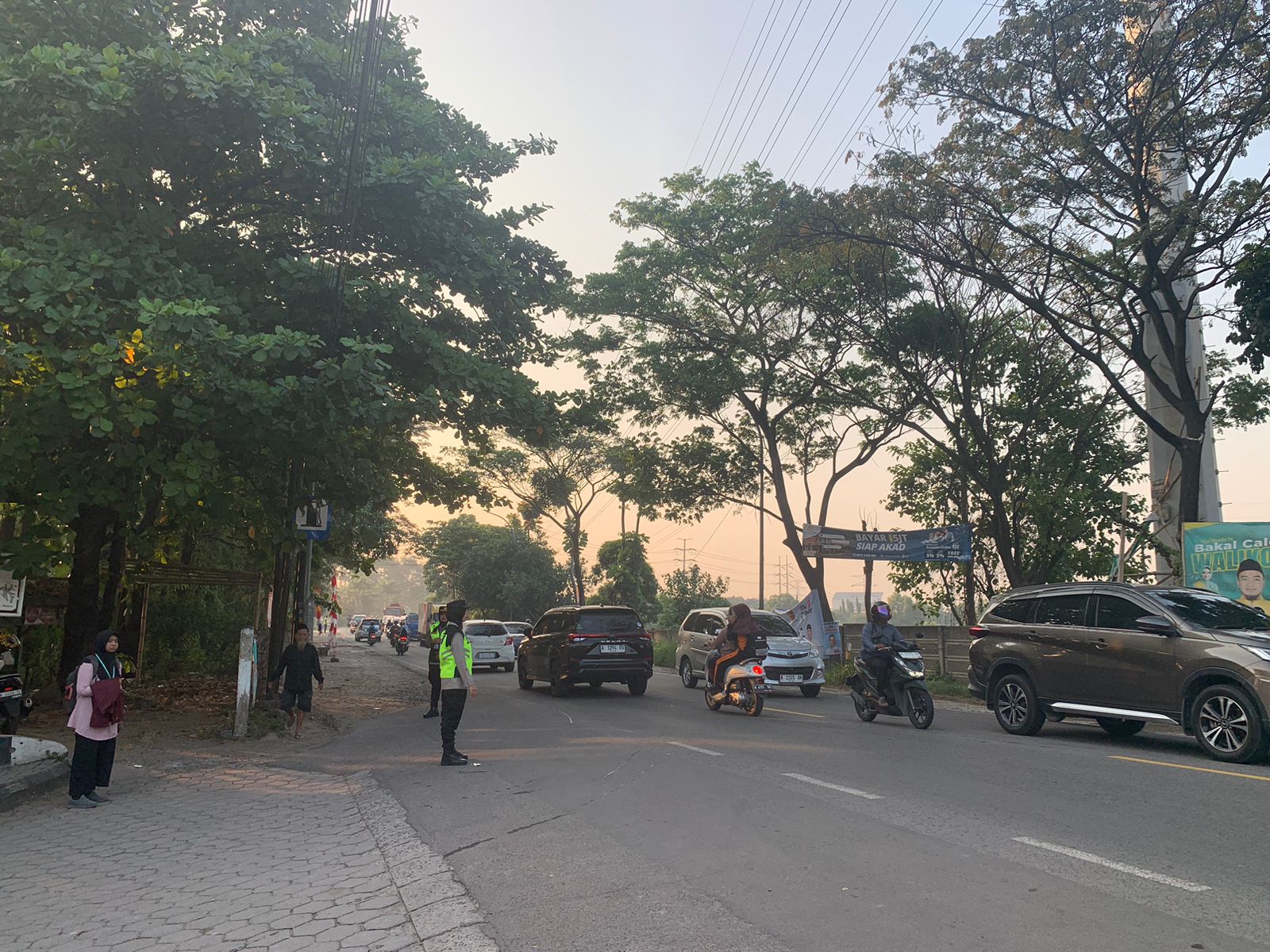 Cilegon,Polres Cilegon Polda Banten Pada Rabu/05/11/2025 Pukul 06.30 Wib, Personil Siwas Polres Cilegon, Aipda Emi Prasetyo melaksanakan kegiatan pengaturan arus lalu lintas di Jalur Protokol jalan utama Kota Cilegon tepat nya di jalur depan perumahan arga baja Pura Kota Cilegon.