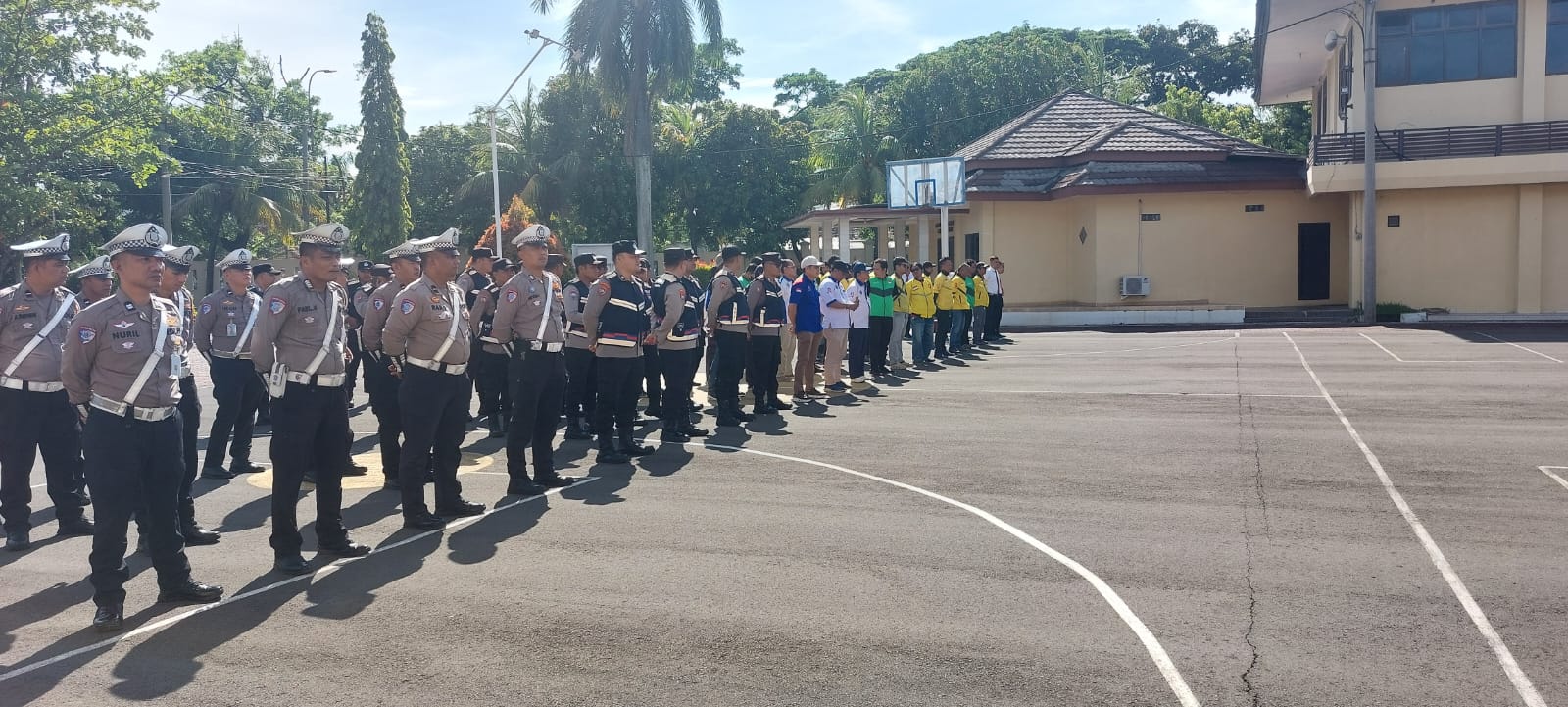 Apel Kamtibmas ini juga diisi dengan pemberian sarana kontak kepada Ojol dan Serikat Buruh, seperti stiker dan pamflet, untuk memudahkan mereka dalam menghubungi Polri jika terjadi gangguan keamanan dan ketertiban.